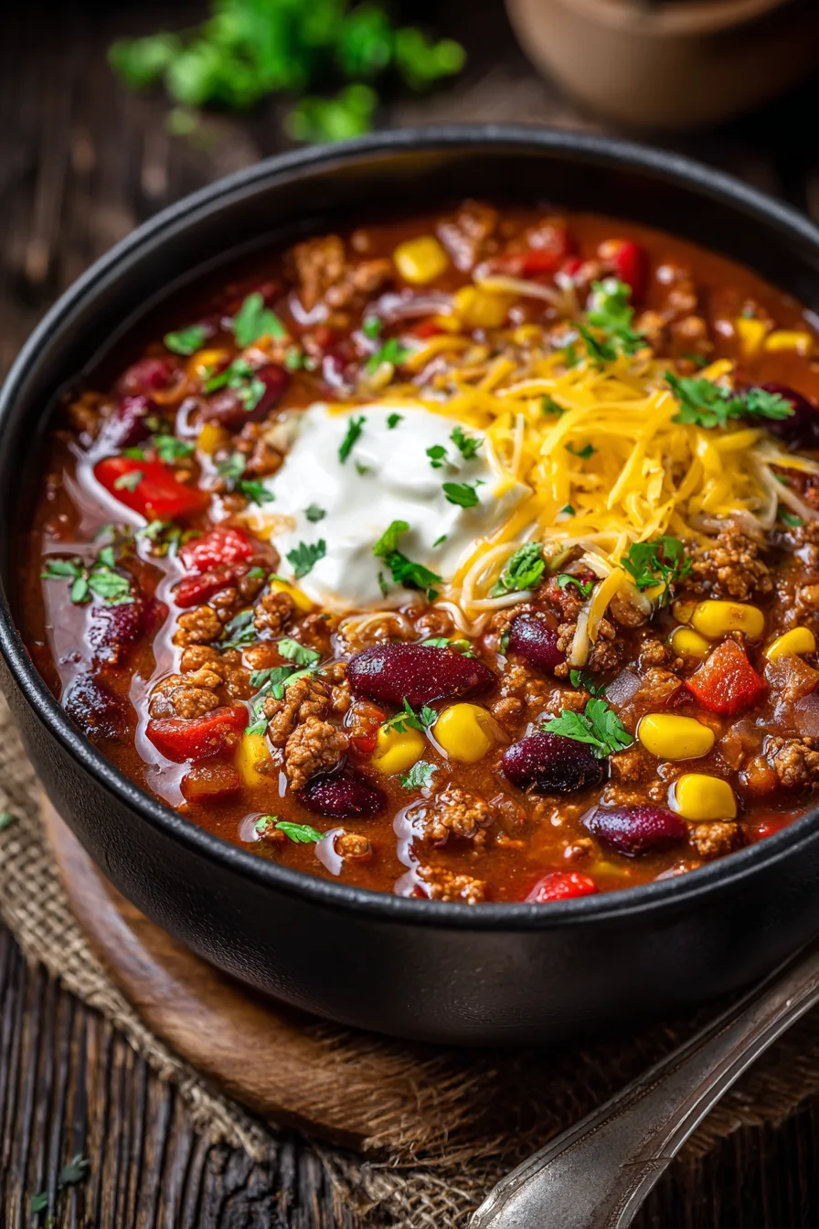 This hearty chili brings together a symphony of flavors through carefully selected ingredients that create depth and complexity: