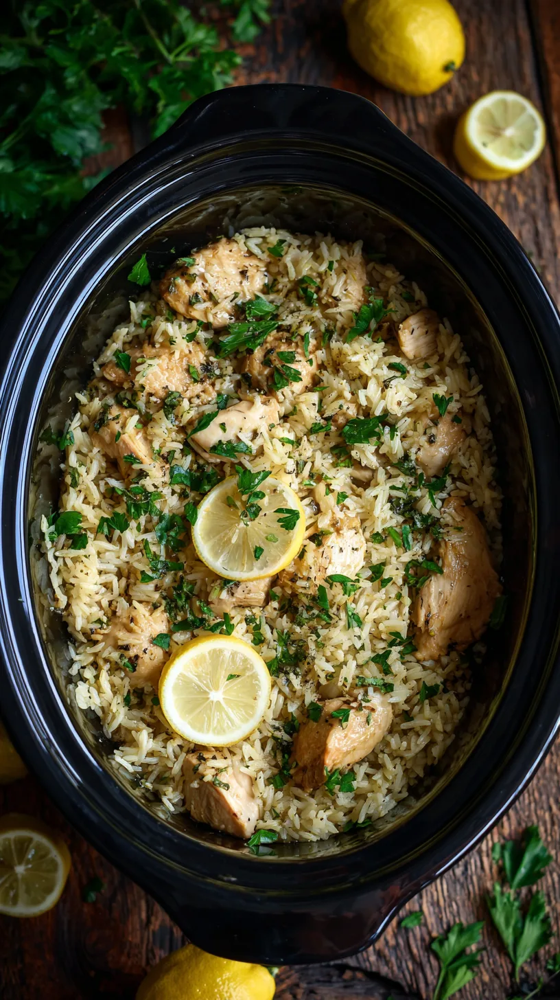 Allow the Slow Cooker Lemon Herb Chicken and Rice to rest for 10 minutes after cooking. This resting period allows flavors to meld while excess moisture evaporates. Sprinkle with fresh parsley and serve immediately for optimal texture and temperature.