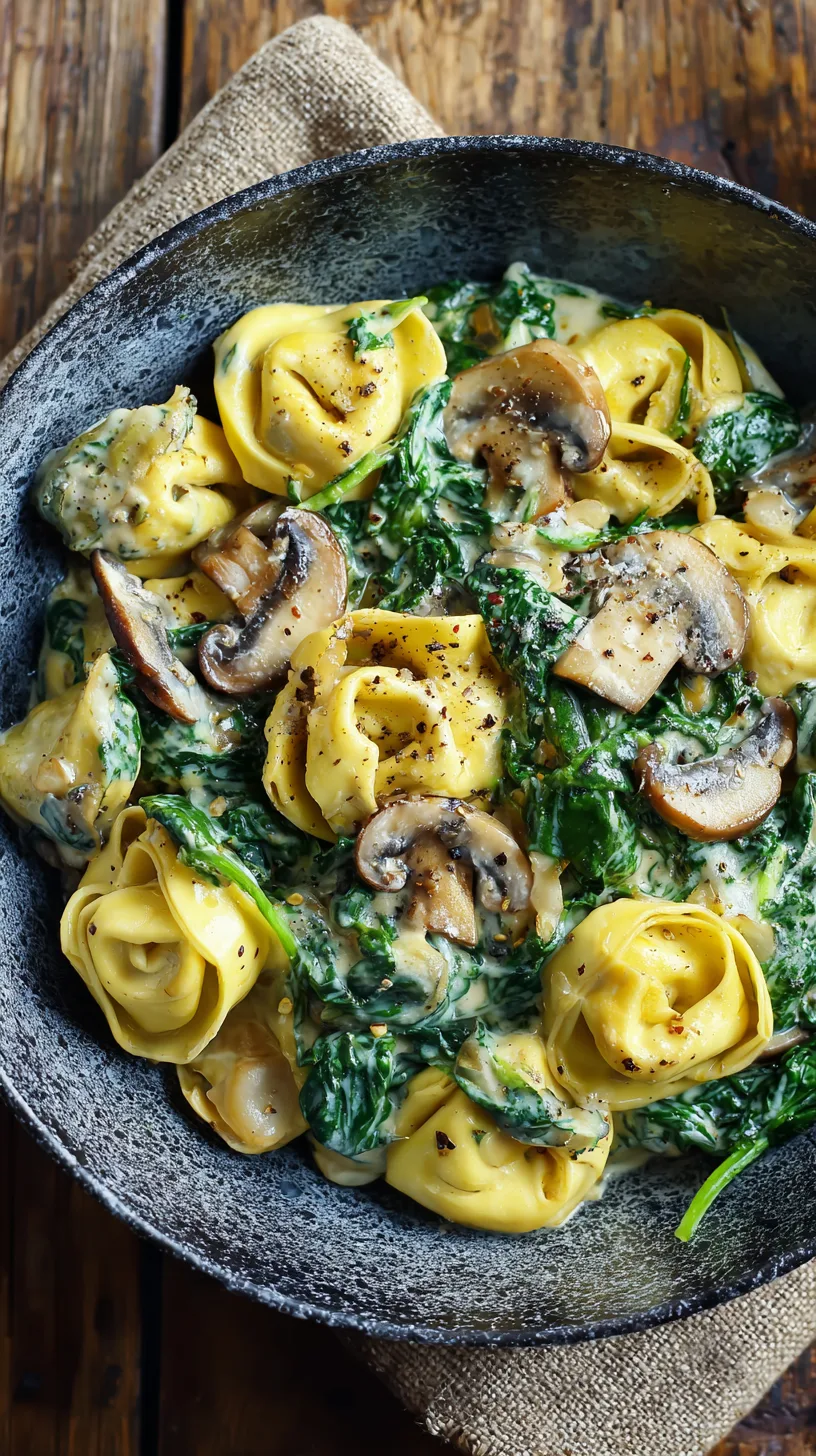 Add the cooked tortellini to the creamy mushroom mixture along with fresh spinach. Toss gently until spinach wilts (about 1-2 minutes). Remove from heat and stir in remaining butter and grated Parmesan cheese. If the sauce seems too thick, add reserved pasta water gradually until you achieve your desired consistency.