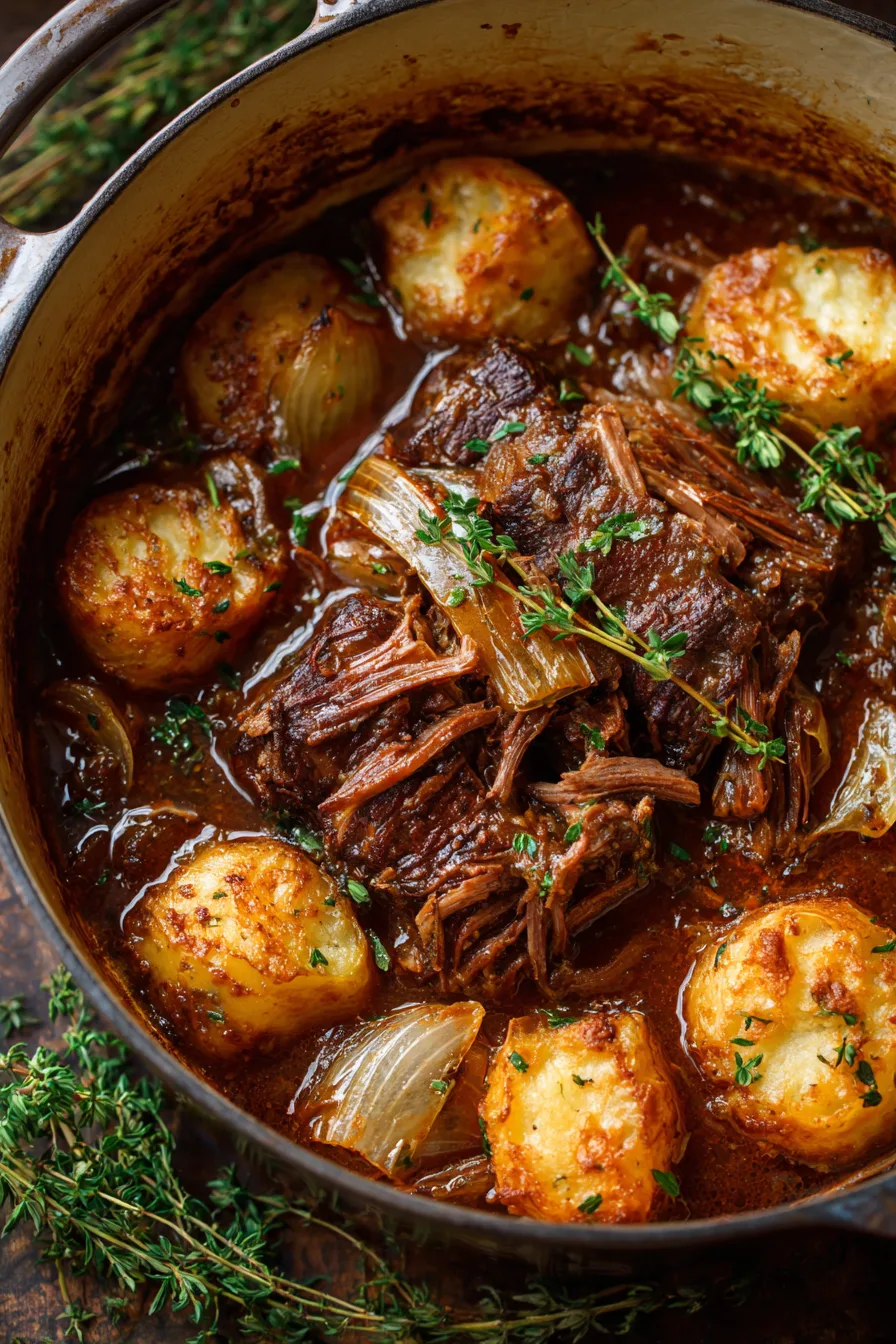 Transform your kitchen into a French bistro with these carefully selected ingredients for the ultimate French onion pot roast recipe: