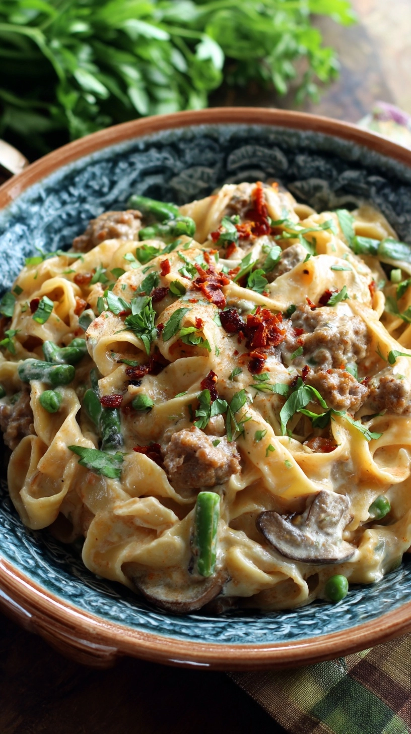 Elevate your Tuscan Sausage Pasta In Creamy Sauce with thoughtful presentation and complementary sides. Serve in warmed bowls with a sprinkle of fresh basil and extra Parmesan. Pair with a crisp arugula salad dressed in lemon vinaigrette to cut through the richness.