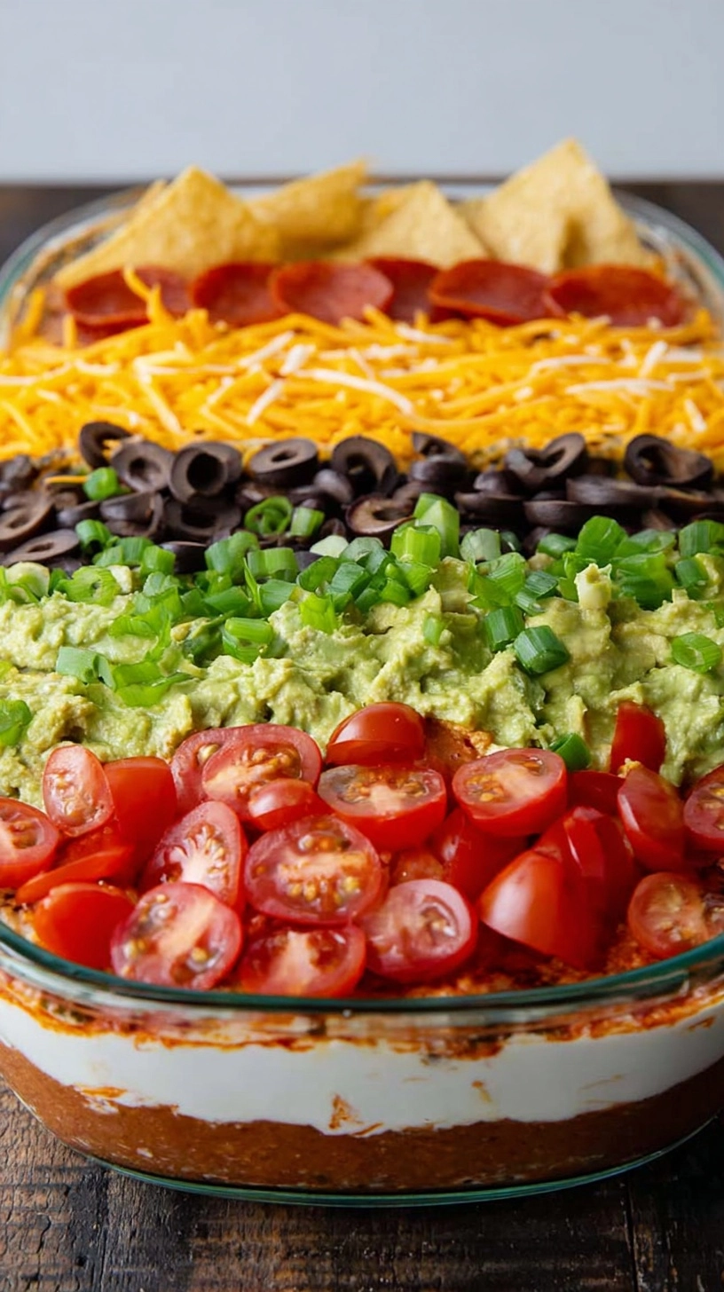 The biggest error in Ultimate 7 Layer Dip preparation is layer bleeding – when ingredients mix and create muddy appearance. Combat this by ensuring each layer is completely cooled before adding the next, and use proper spreading techniques. Don’t over-mix the avocado; lumps provide textural interest. Avoid pre-dicing tomatoes more than 2 hours ahead, as excess moisture will compromise lower layers. Never use pre-shredded cheese if possible – fresh-grated melts better and has superior flavor. Finally, resist the urge to make this more than 4 hours ahead; freshness peaks within the first few hours of assembly.